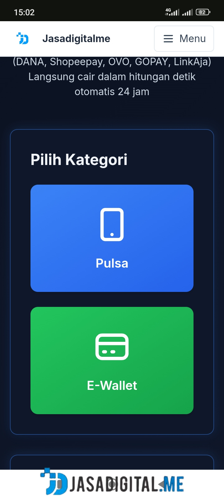 Pertama, silahkan pilih kategori layanan yang Anda inginkan. Di tutorial ini dicontohkan memilih layanan E-Wallet.