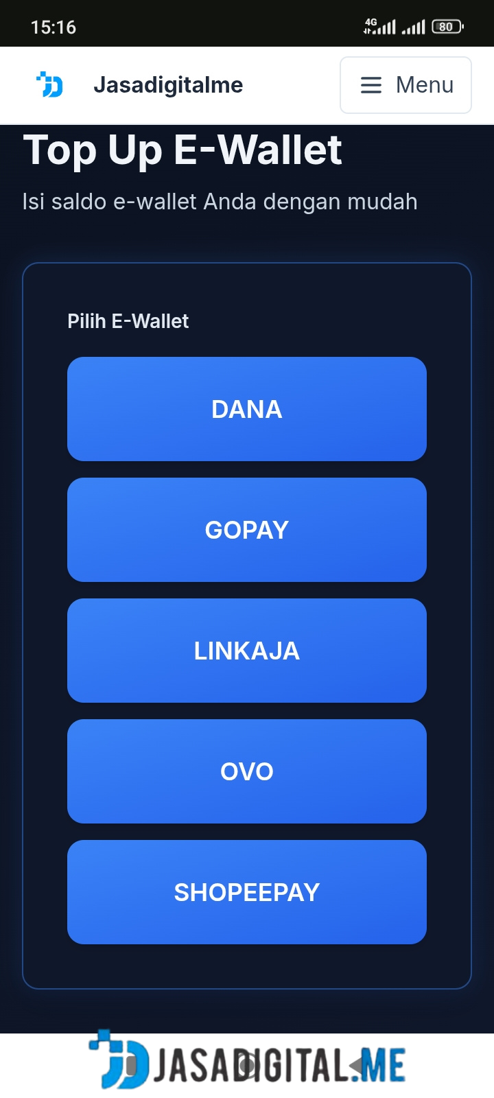 Kedua, pilih jenis E-Wallet sesuai keingan Anda. Di tutorial ini dicontohkan memilih DANA.