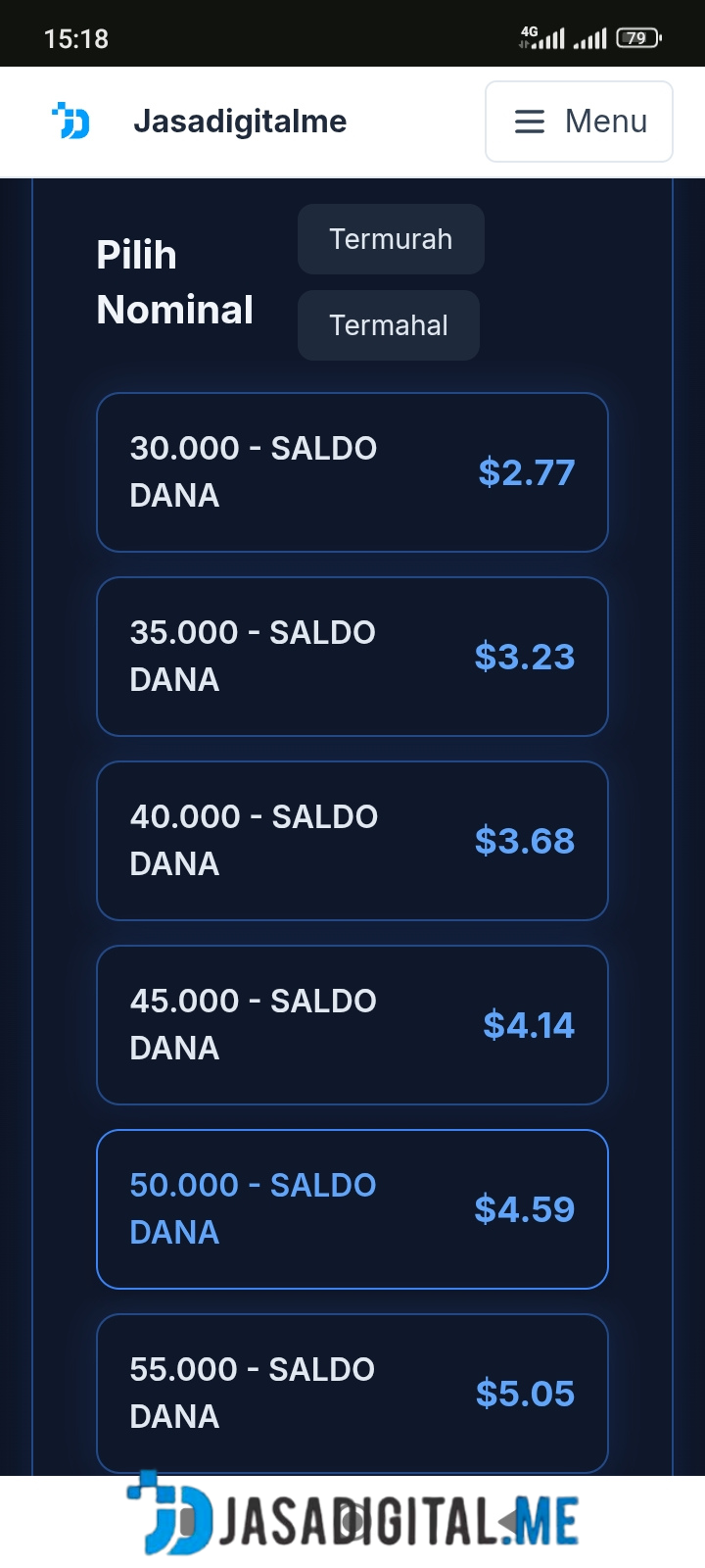 Setelah klik "Lanjut", Anda akan dialihkan ke bagian "Pilih Nominal".