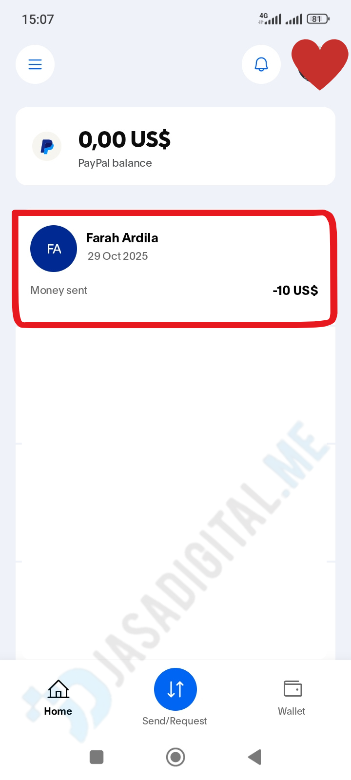 Cara Melakukan Pembayaran Via PayPal 1. Buka Aplikasi Paypal Anda. Pastikan saldo Anda cukup untuk melakukan pembayaran. 2. Klik tombol "Send/Request" atau "Kirim/Minta" seperti yang ditunjukkan Gambar di bawah ini: