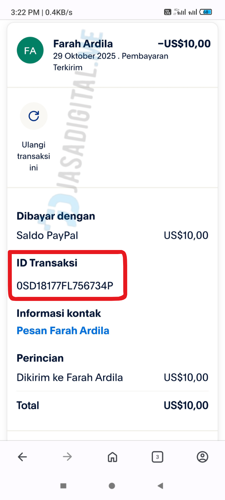 Keenam, Salin ID Transaksi 1. Klik riwayat transaksi pembayaran via Paypal yang baru saja dilakukan. Contoh seperti di gambar